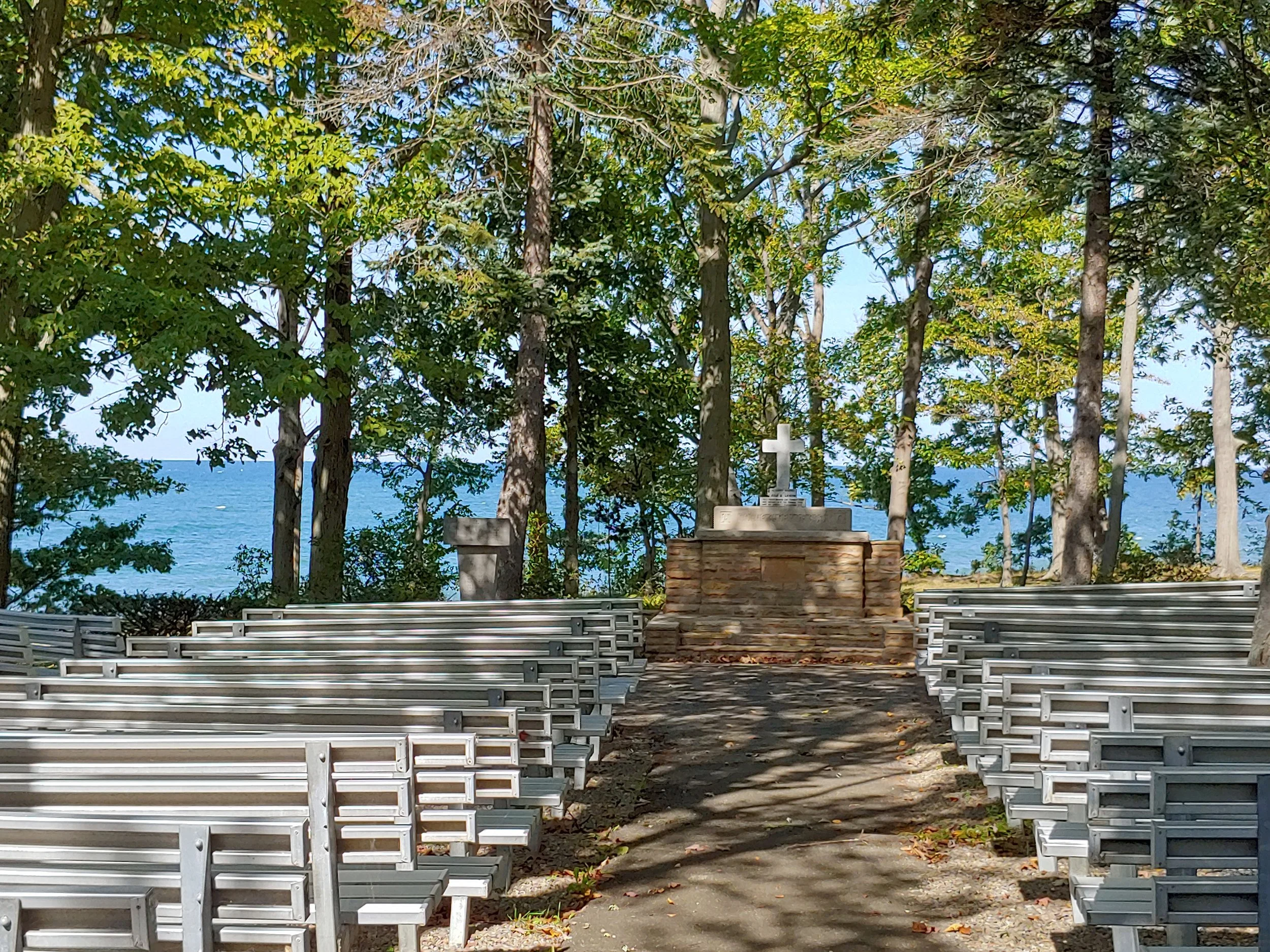 Tucked beneath a canopy of towering trees and just steps from the beauty of Lake Erie, our Chapel in the Woods is one of the most beloved spaces at Pioneer on the Lake.
